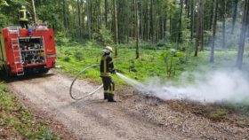Eine Spaziergängerin entdecke in einem Waldstück südlich der L 220 im Ortsteil Liggeringen einen kleineren Flächenbrand.